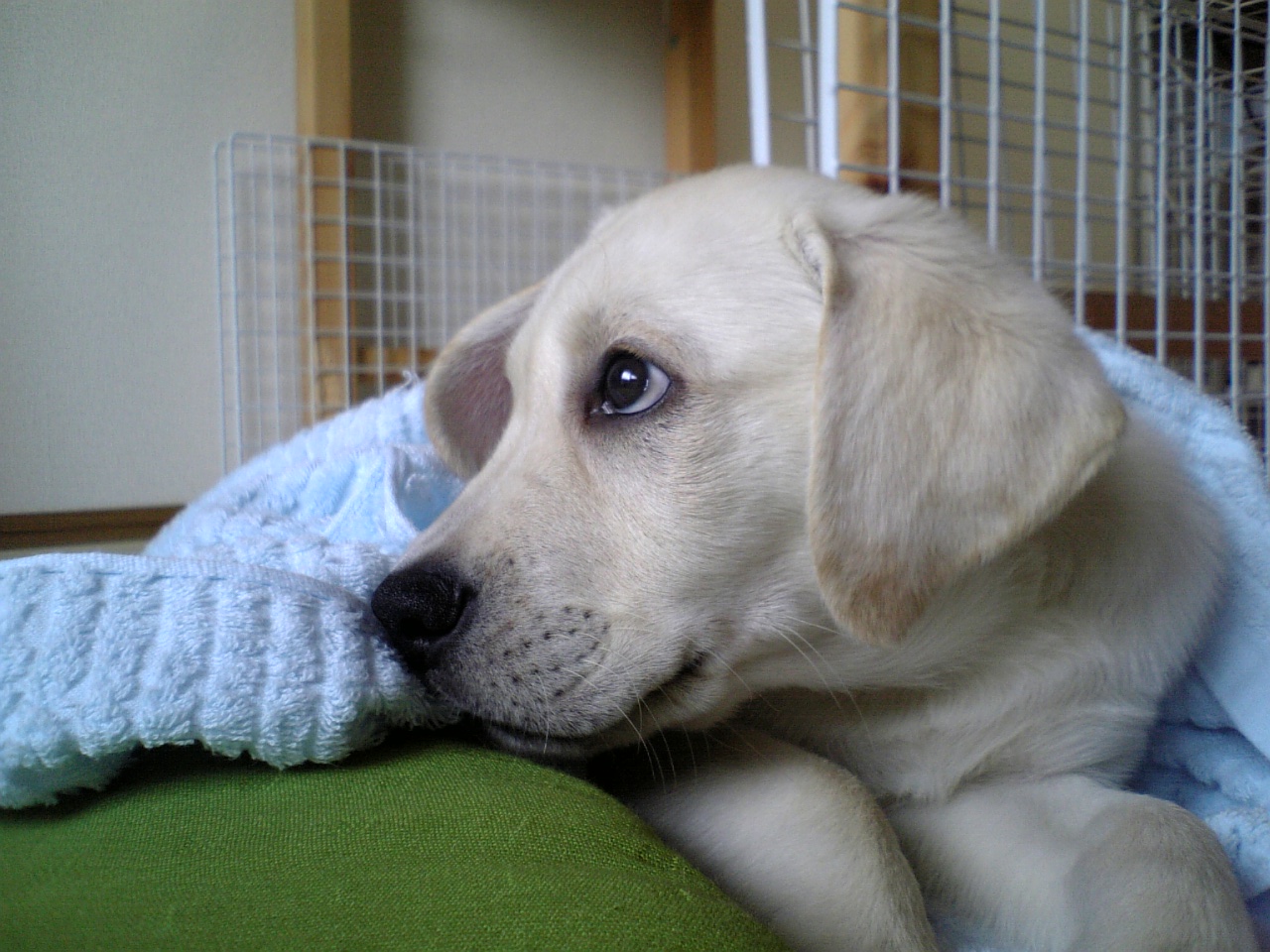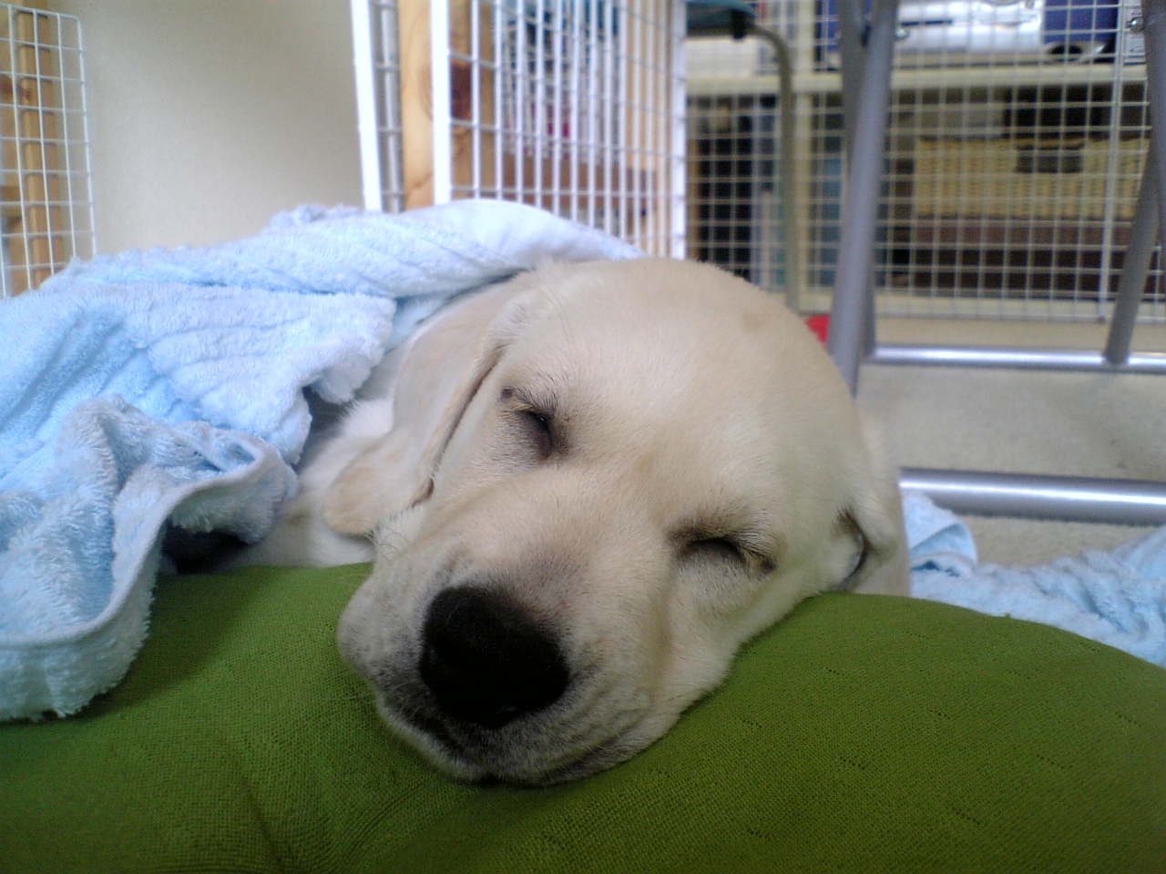 で、タフィーはサークルの中でお留守番。