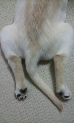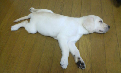 彼の『伏せ』は足が『のびのびた』なんです